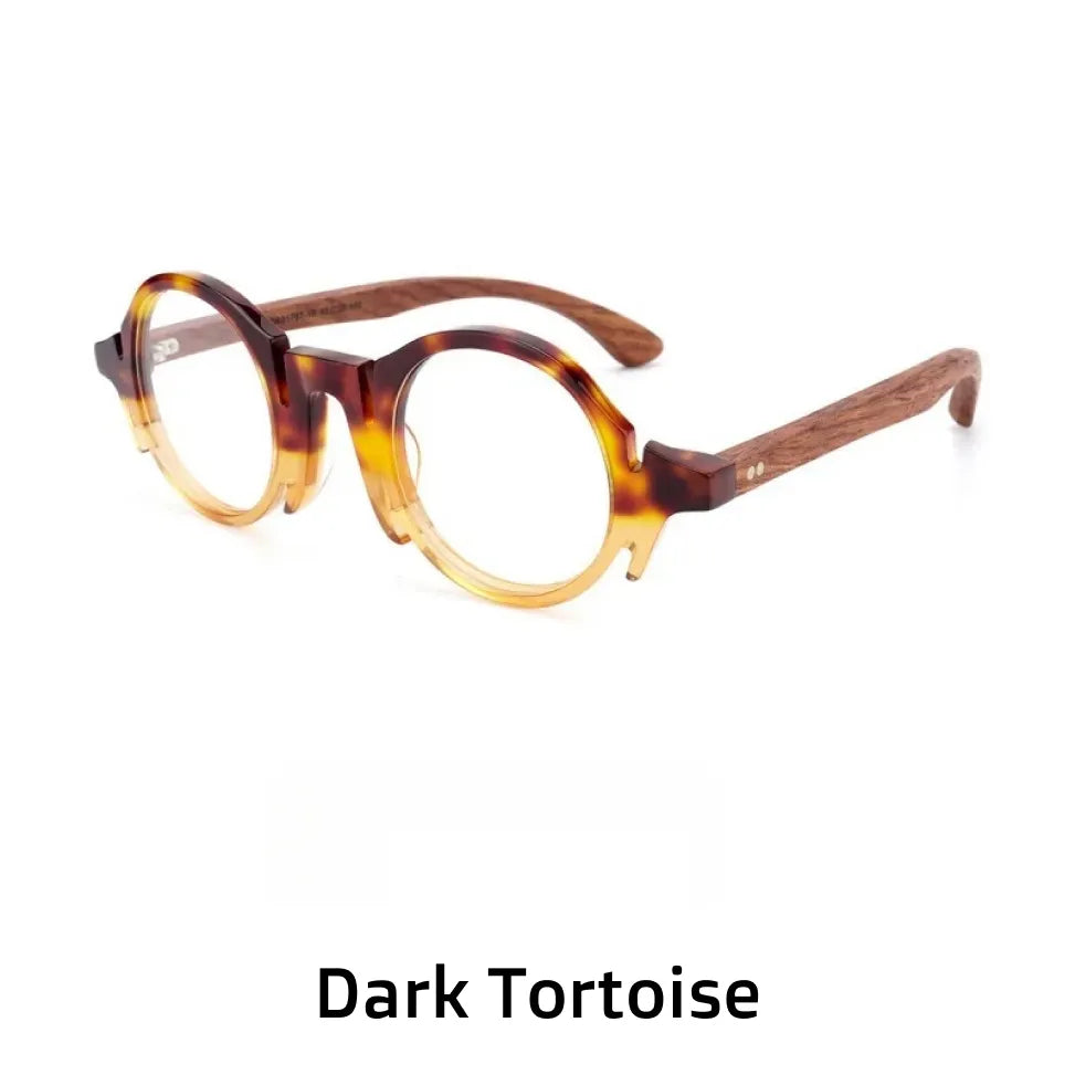 Retro Round Eyeglass Frame with Wooden Temples